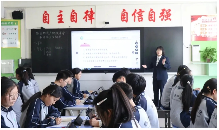 靳亞濛老師通過AI數(shù)字人、學生作品展示等多樣化的教學手段,激發(fā)學生的學習興趣和語言運用能力;鄭婕老師則通過生動的案例和互動式教學,幫助學生更好地理解和記憶歷史知識;朱璐瑩老師基于學生行為數(shù)據(jù),系統(tǒng)智能推送分層練習、微課視頻與拓展任務,實現(xiàn)“千人千面”的學習支持。張思敏老師巧妙設計學生平板搶答、投票、作品提交等數(shù)據(jù),精準定位薄弱環(huán)節(jié),動態(tài)調整教學策略。這些場景印證了一個趨勢:智慧課堂的終極目標,不是用機器取代教師,而是讓教師成為“超級個體”——既能以數(shù)據(jù)洞察學情,又能以人文滋養(yǎng)靈魂;既能立足課堂,又能聯(lián)動全域資源。4節(jié)精彩的課堂效果也展示了ESWI智慧課堂云系統(tǒng)對教學提質增效的賦能。